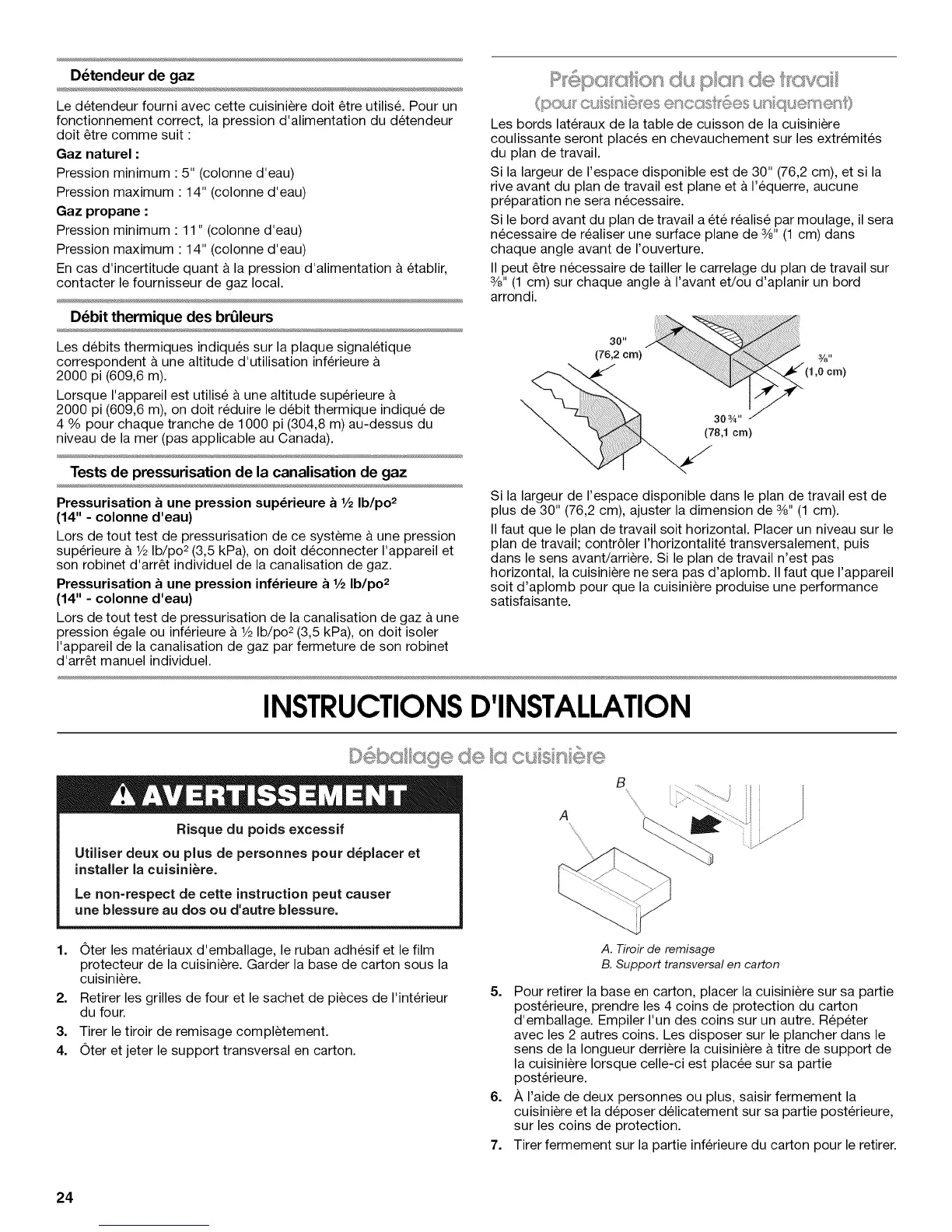 Si la largeur de I'espace disponible est de 30" (76,2 cm), et si la