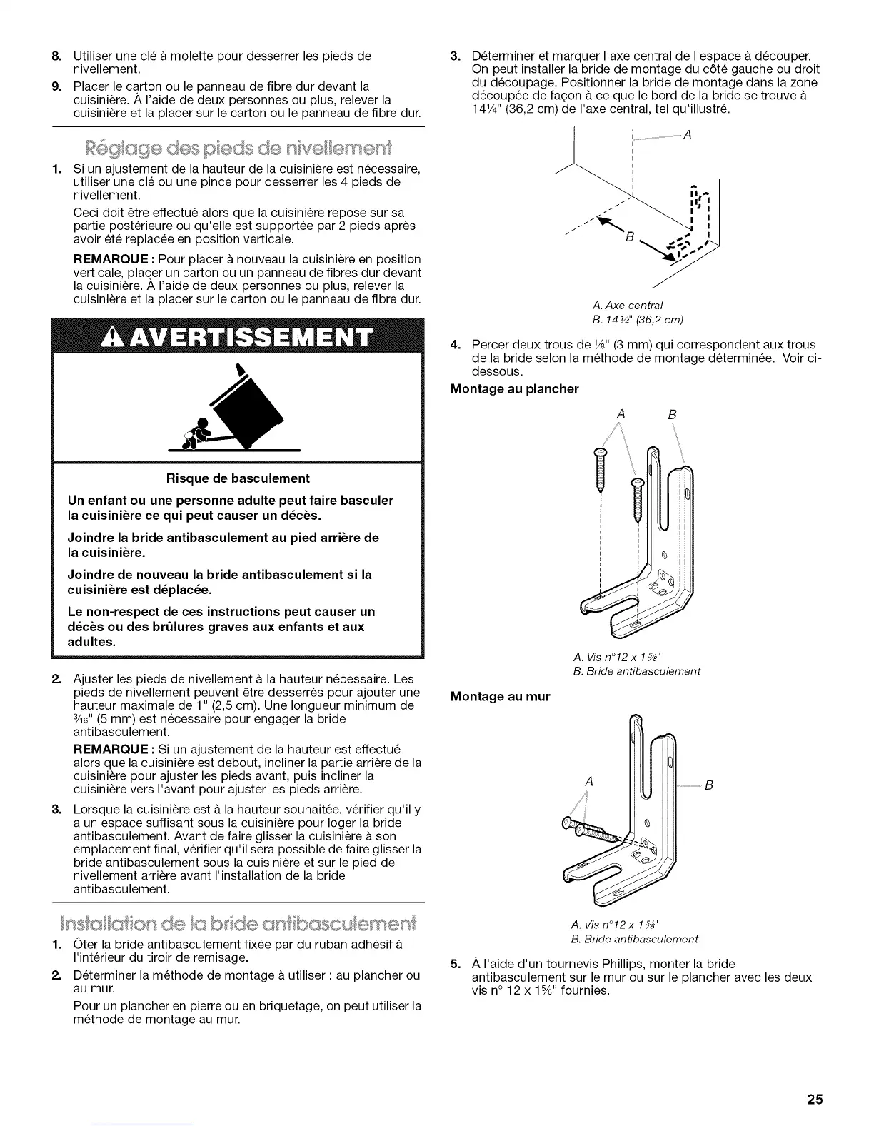 cuisiniere pour ajuster les pieds avant, puis incliner la