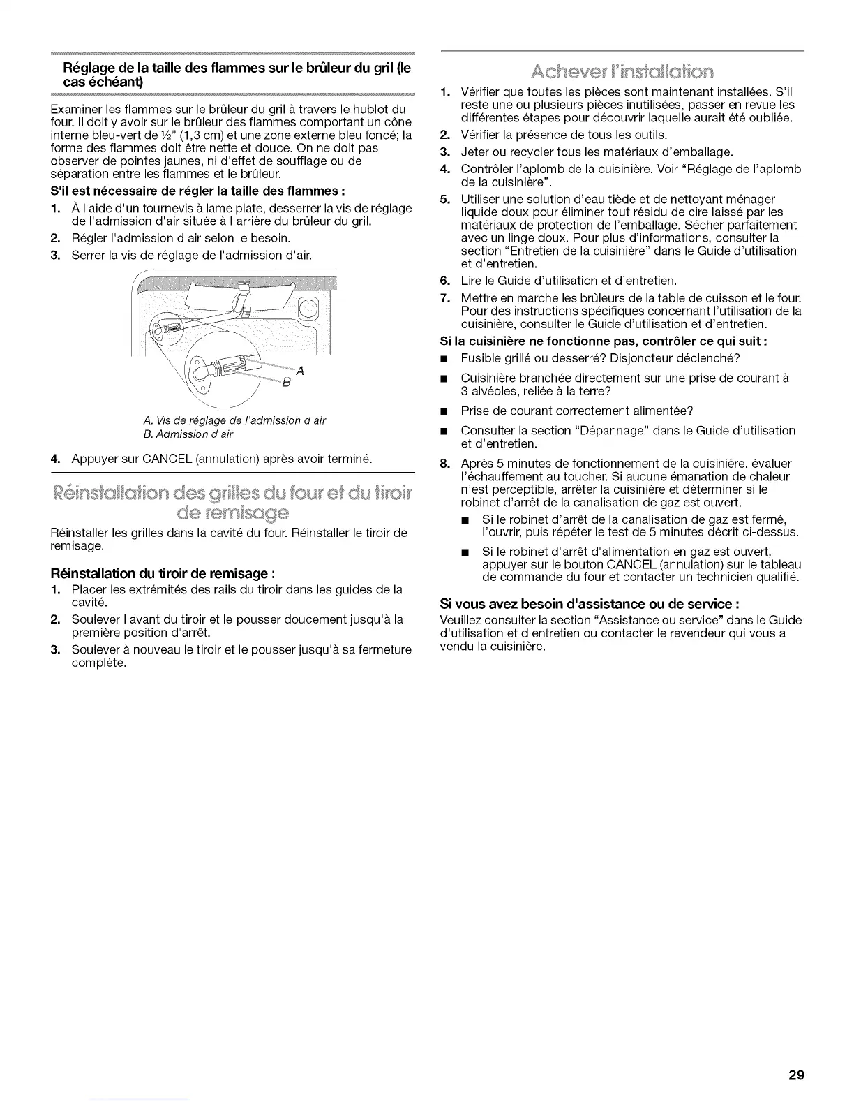 4. Contr61er I'aplomb de la cuisiniere. Voir "Reglage de I'aplomb