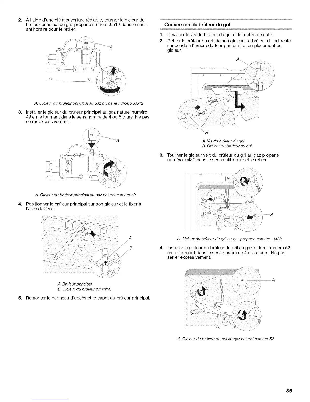 Installer le gicleur du brQleur du gril au gaz naturel numero 52