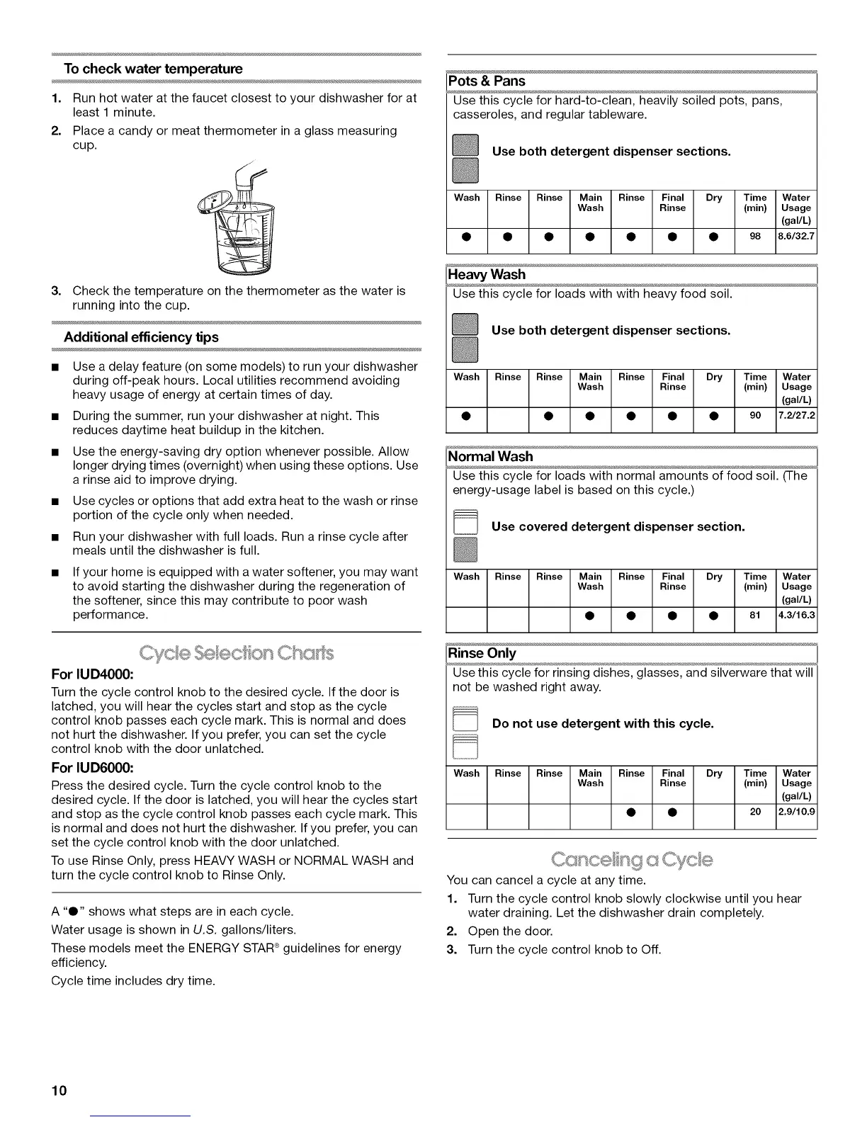 Use this cycle for rinsing dishes, glasses, and silverware that will