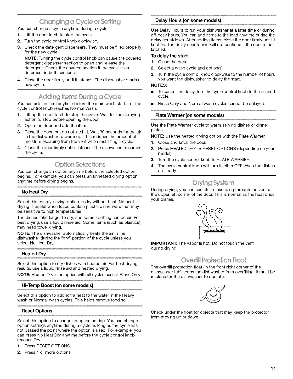 NOTE: The dishwasher automatically heats the air in the