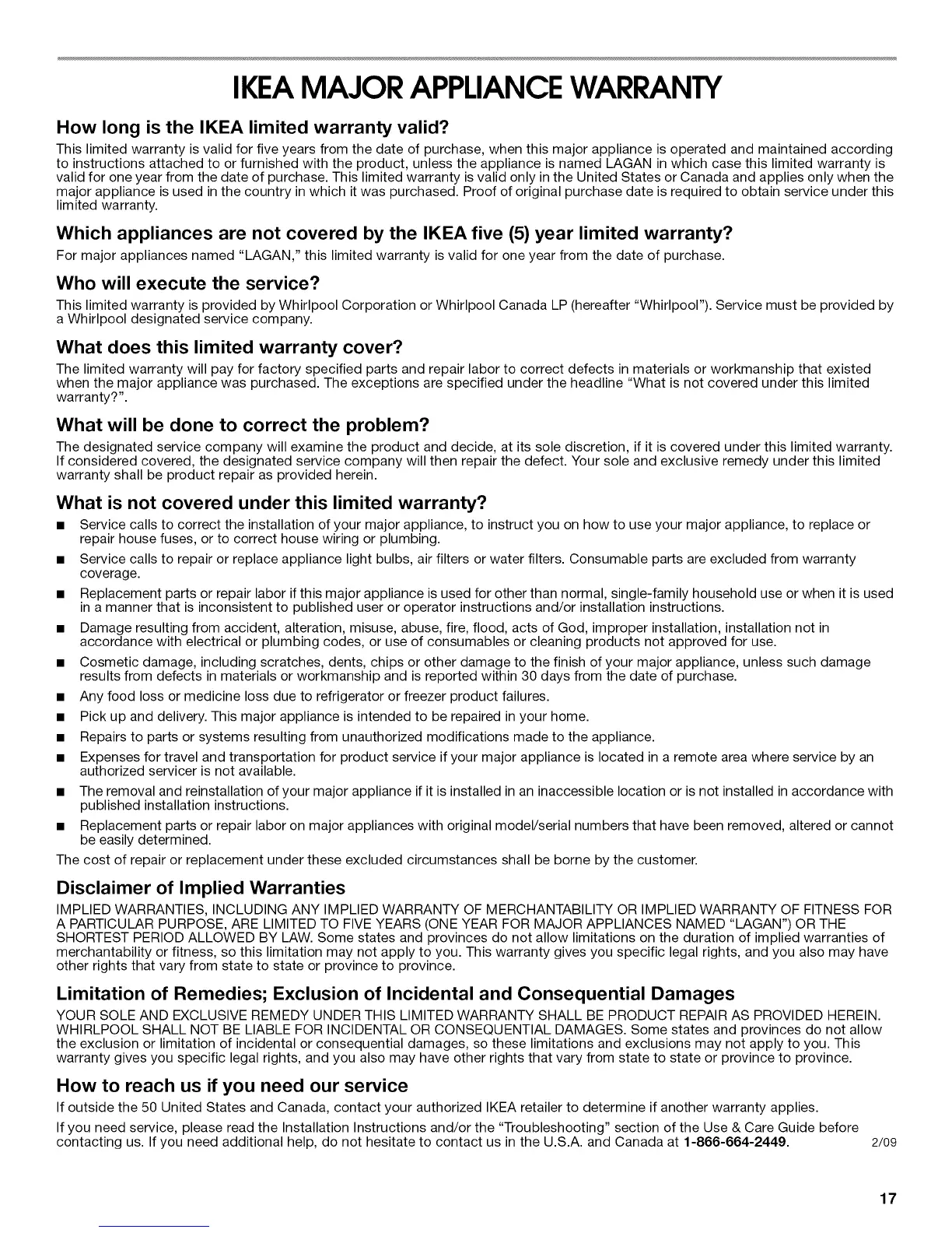 If outside the 50 United States and Canada, contact your authorized IKEA retailer to determine if another warranty applies.