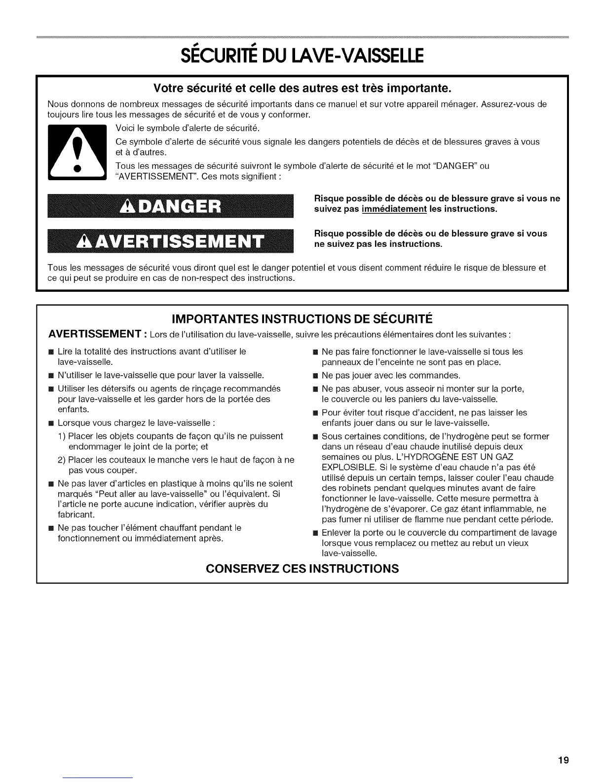 Nous donnons de nombreux messages de s_curit_ importants dans ce manuel et sur votre appareil m_nager. Assurez-vous de
