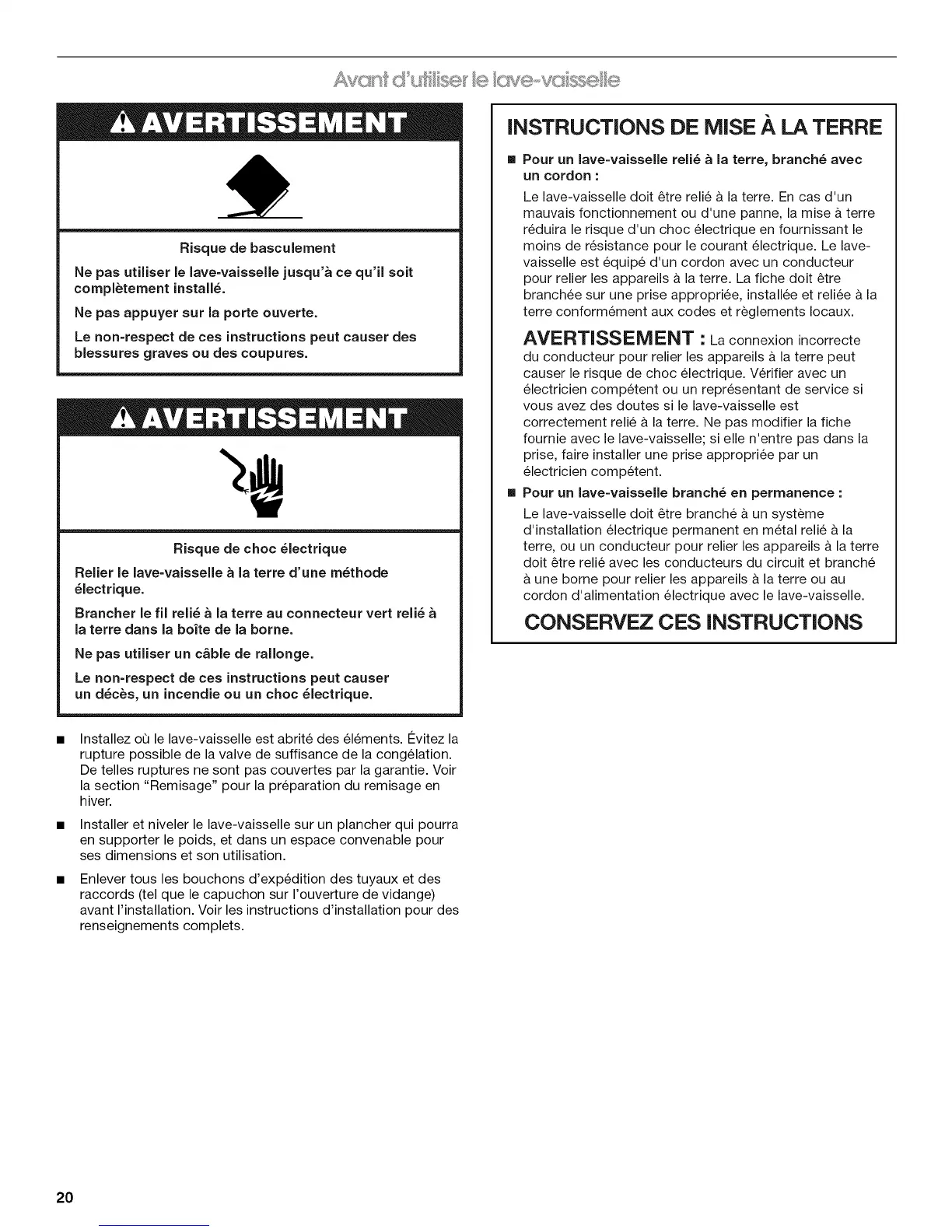 Le lave-vaisselle doit _tre relie a la terre. En cas d'un