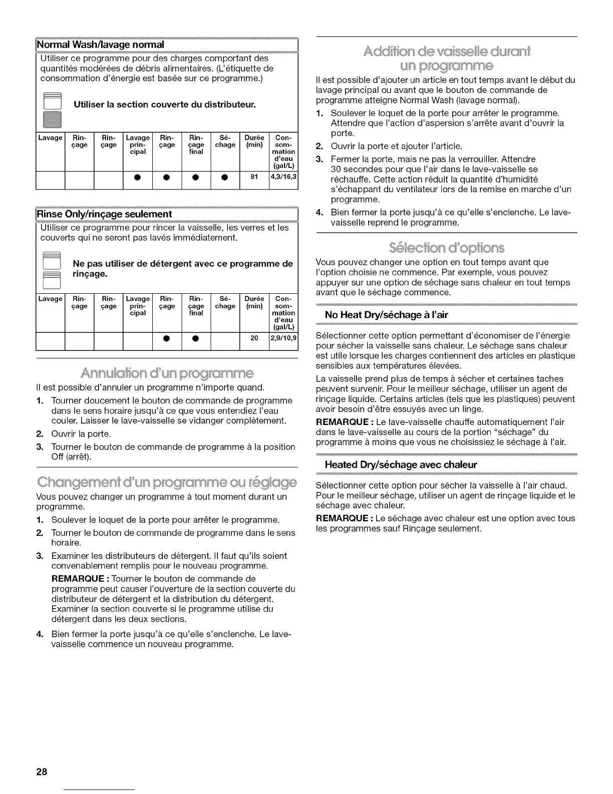 REMARQUE : Le lave-vaisselle chauffe automatiquement I'air