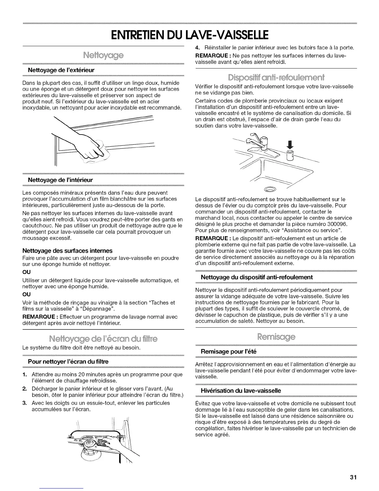 besoin, 8ter le panier inferieur pour atteindre I'ecran du filtre.)