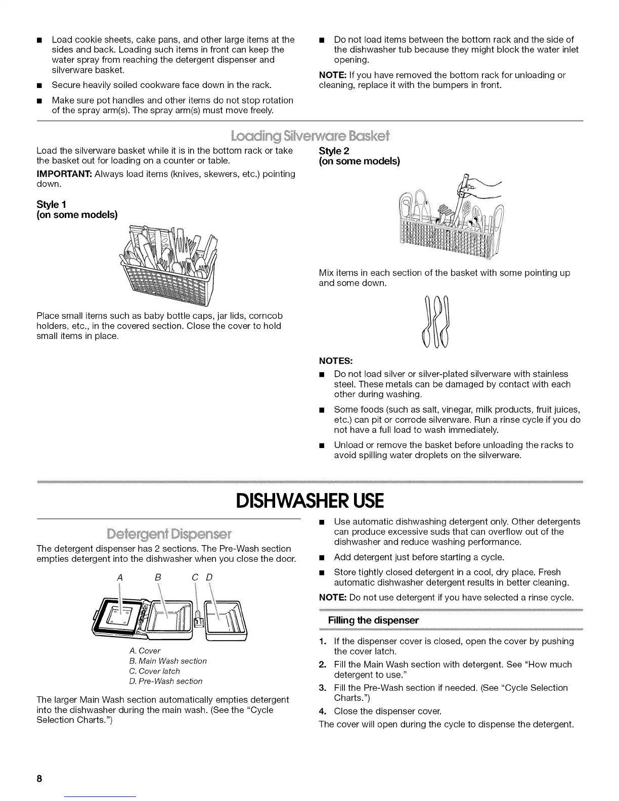 • Do not load silver or silver-plated silverware with stainless