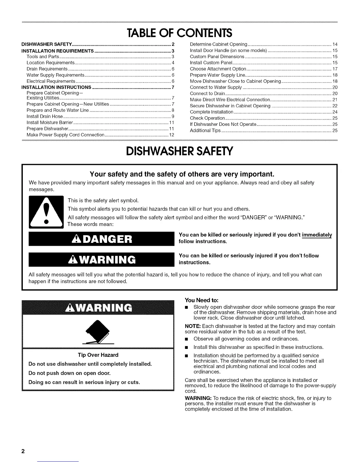 Secure Dishwasher in Cabinet Opening ................................................ 22