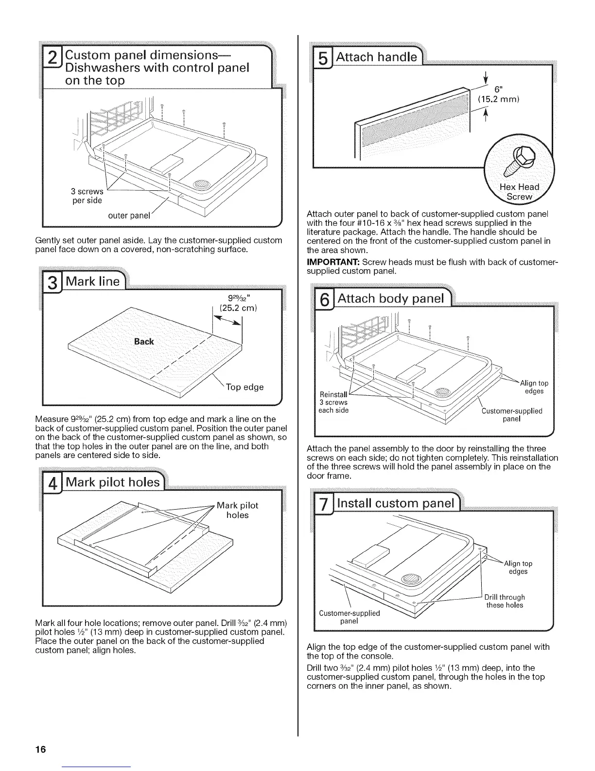 pilot holes 1/2"(13 mm) deep in customer-supplied custom panel.