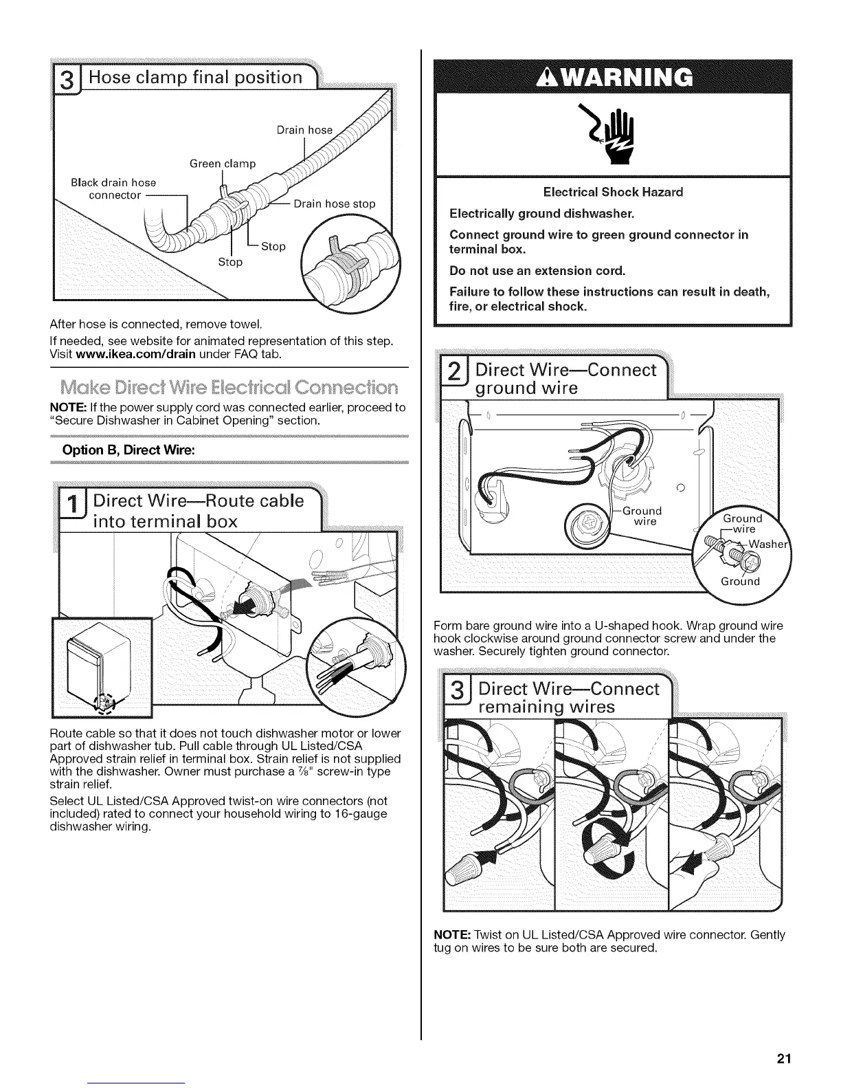 part of dishwasher tub. Pull cable through UL Listed/CSA