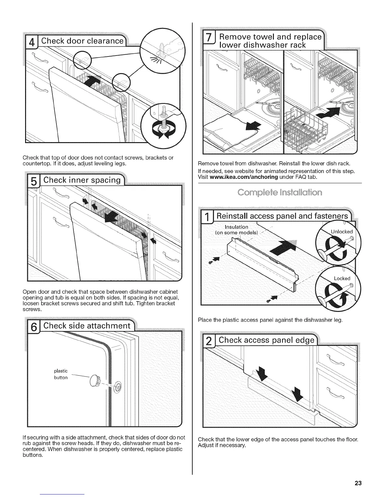 Check that the lower edge of the access panel touches the floor.