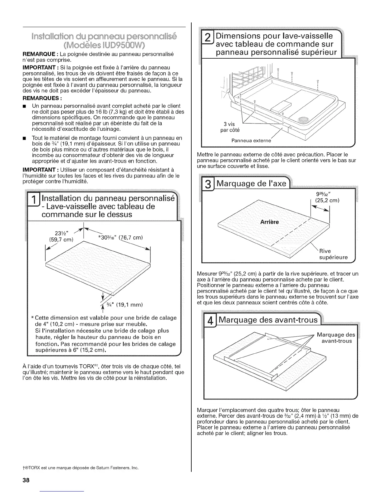 des vis ne dolt pas exceder I'epaisseur du panneau.