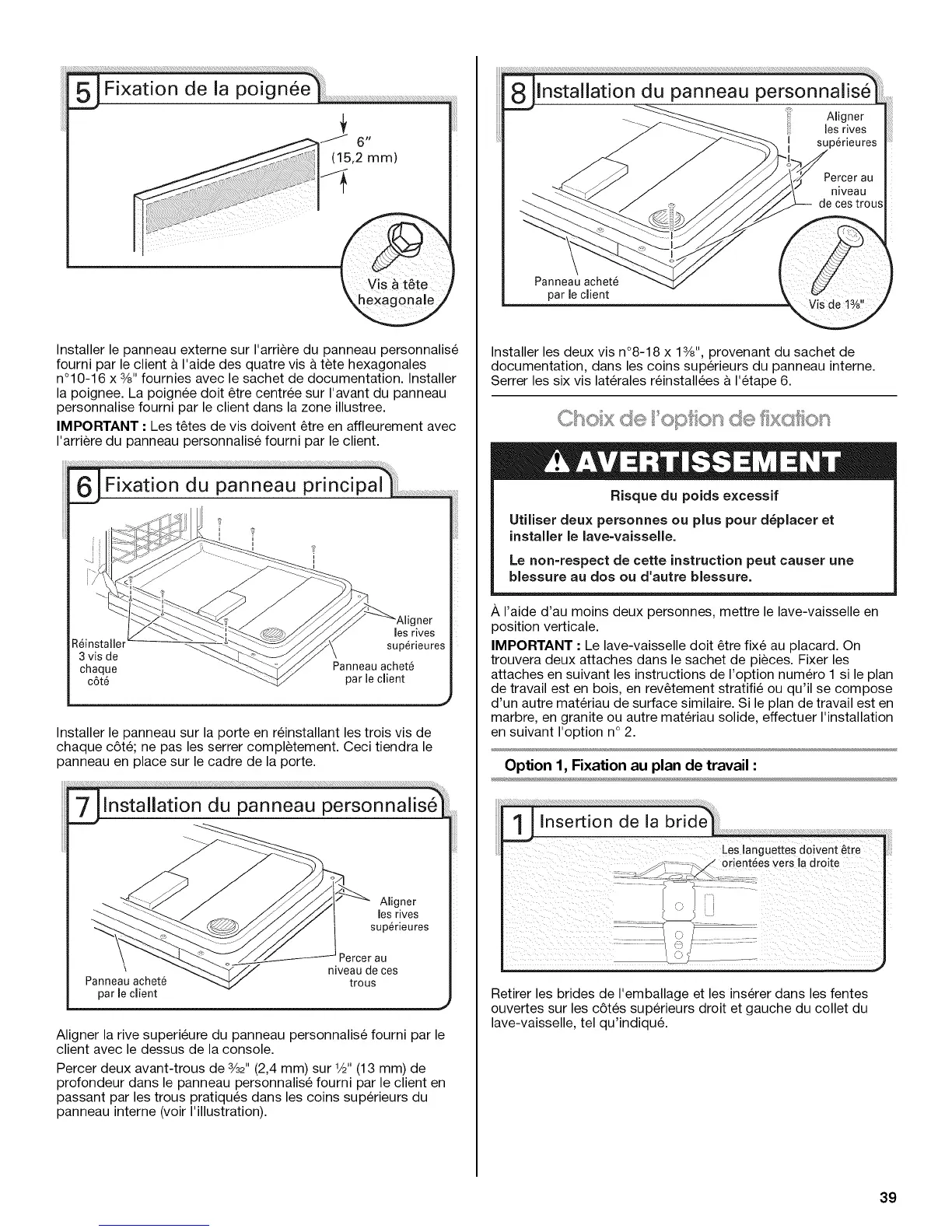 IMPORTANT : Le lave-vaisselle dolt 6tre fixe au placard. On