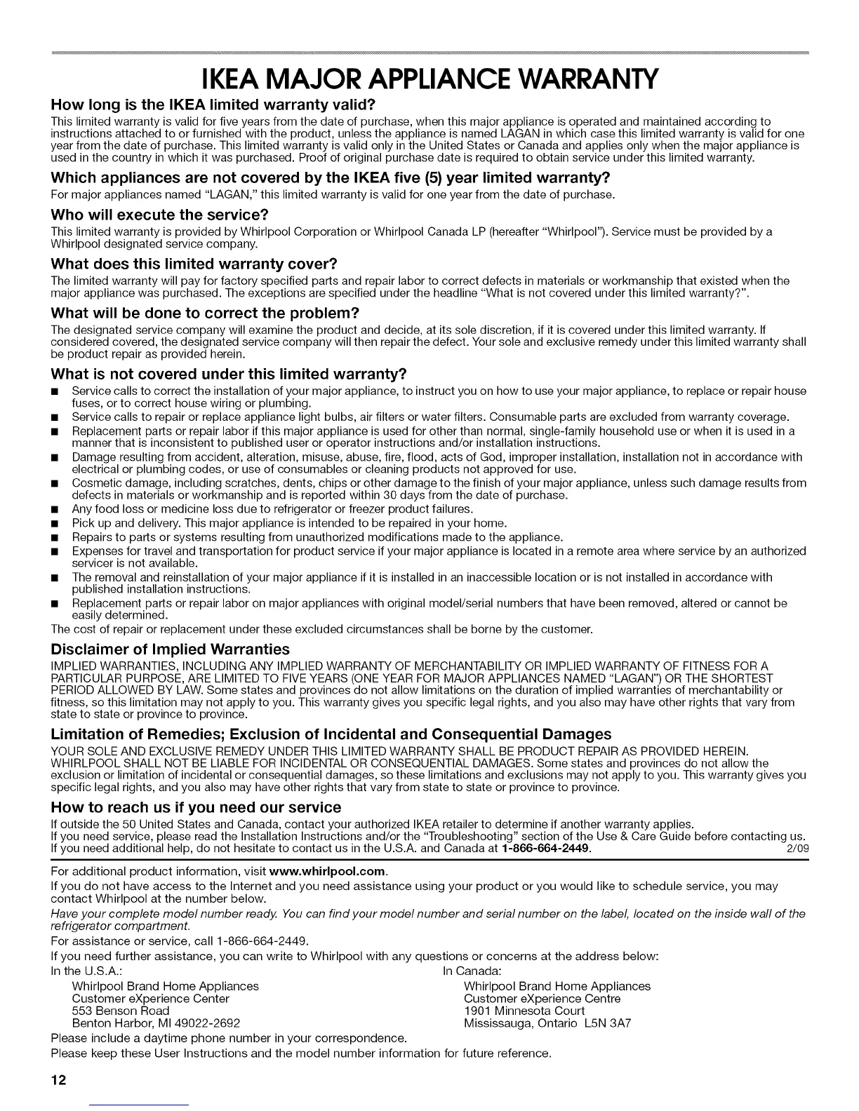 IKEAMAJOR APPLIANCE WARRANTY