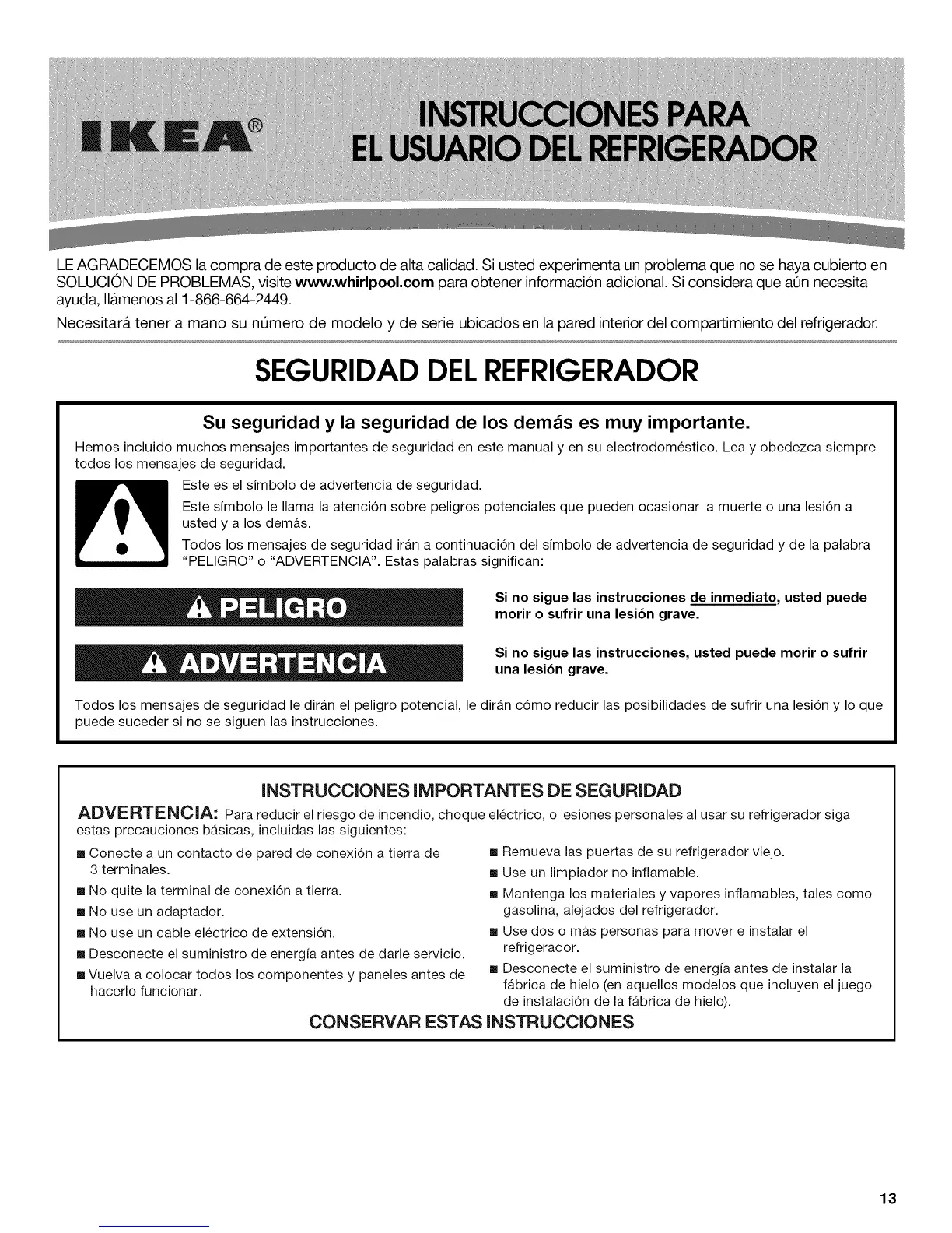 SOLUClONDEPROBLEMAS,visitewww.whirlpool.comparaobtenerinformaci6nadicional.SiconsideraqueaQnnecesita