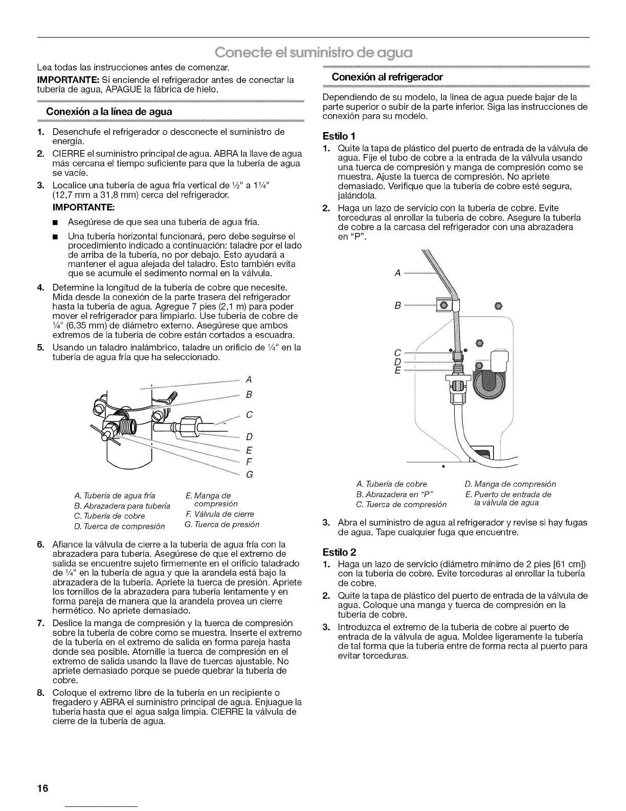 Conexi6n a la linea de agua conexion para su modelo.