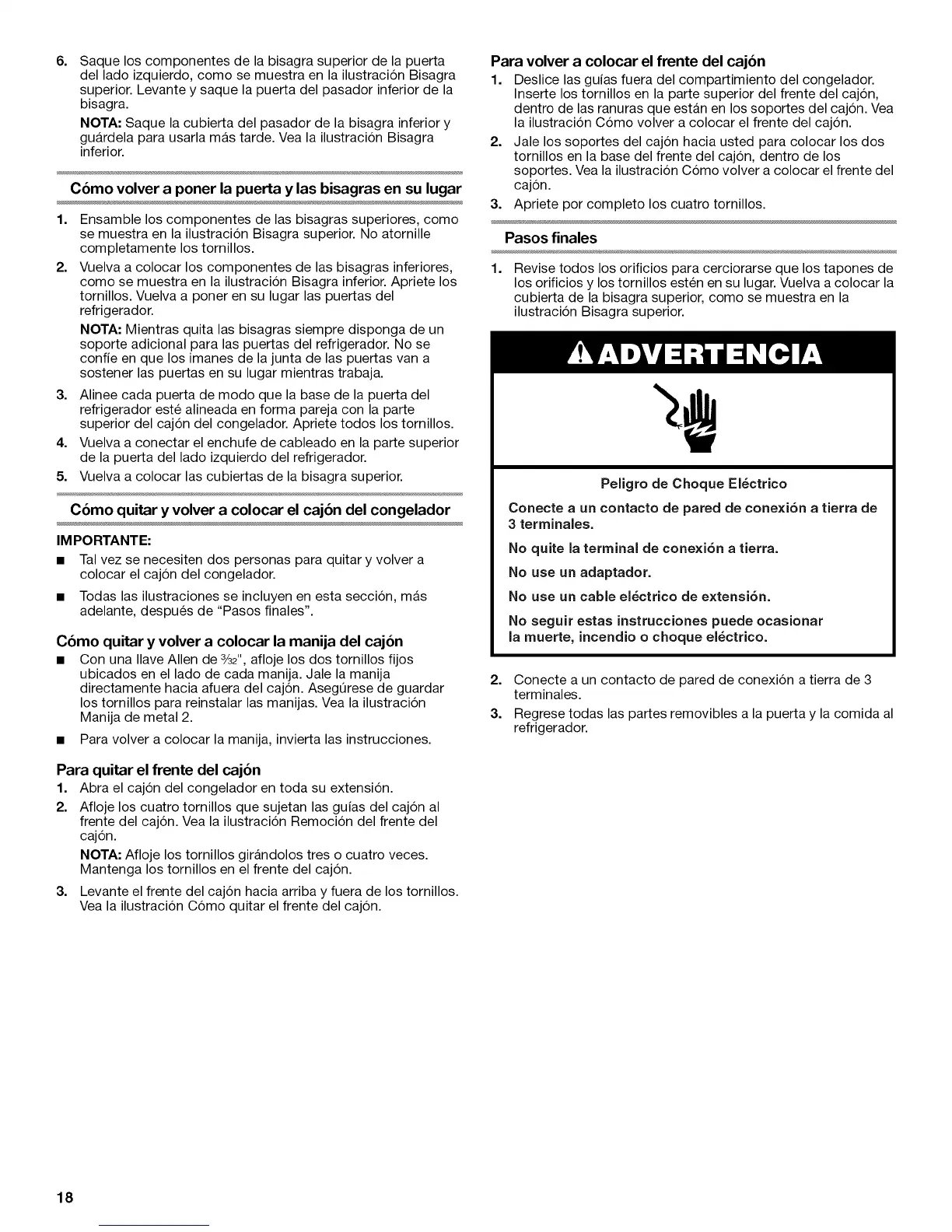 los orificios y los tornillos esten en su lugar. Vuelva a colocar la