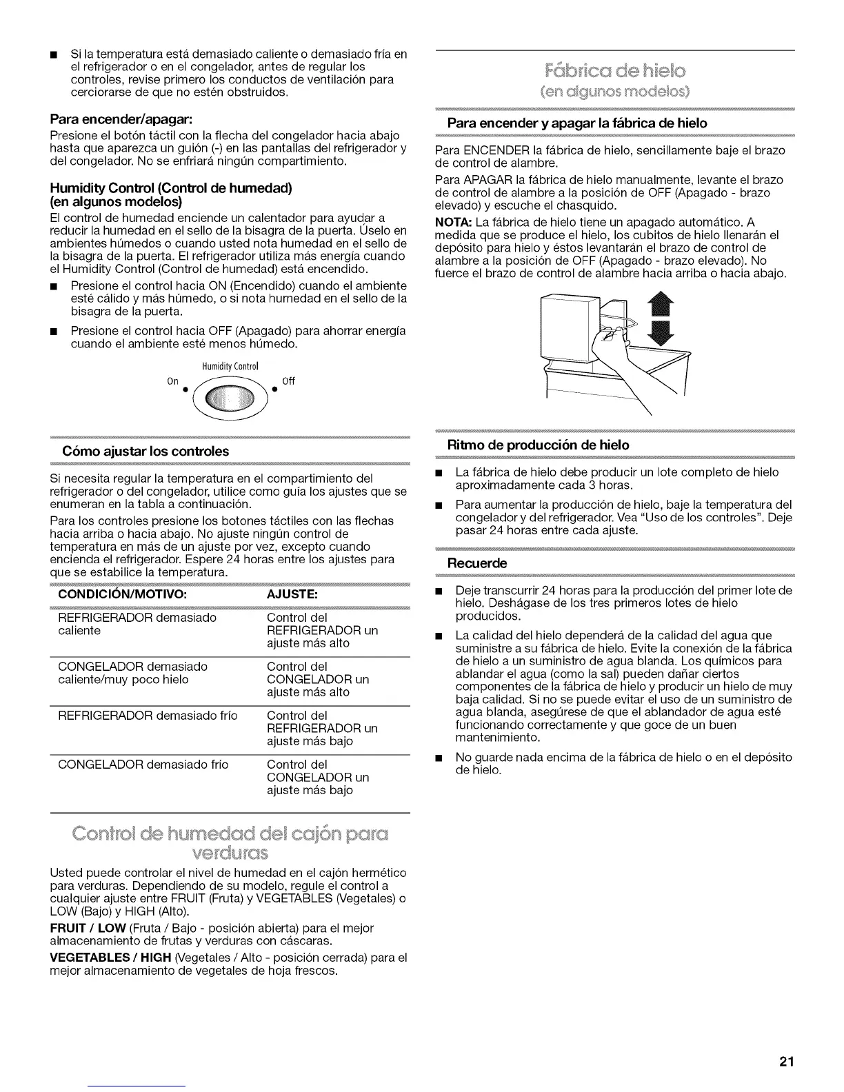 • Para aumentar la produccion de hielo, baje la temperatura del