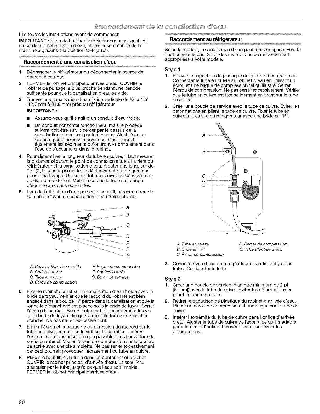 d'eau. Ajuster le tube de cuivre de fagon & ce qu'il s'adapte