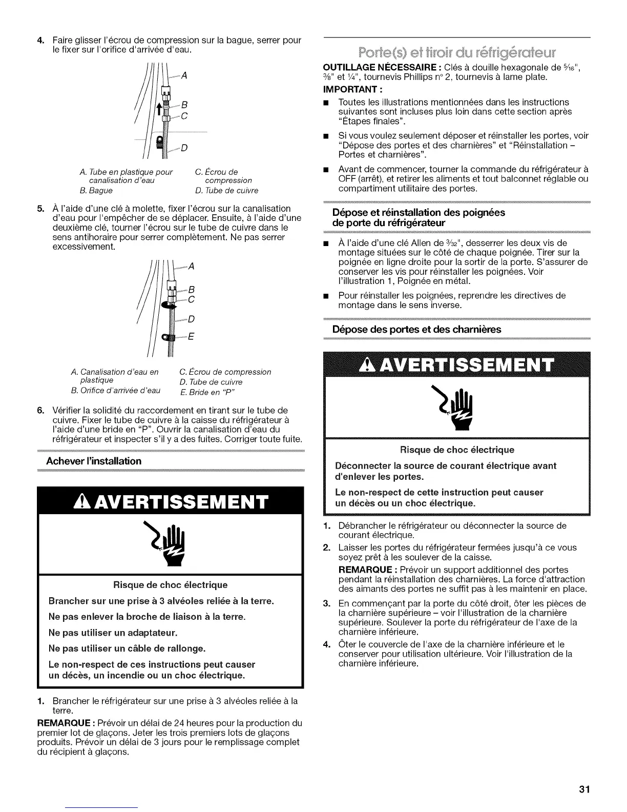 "Depose des portes et des charnieres" et "Reinstallation -