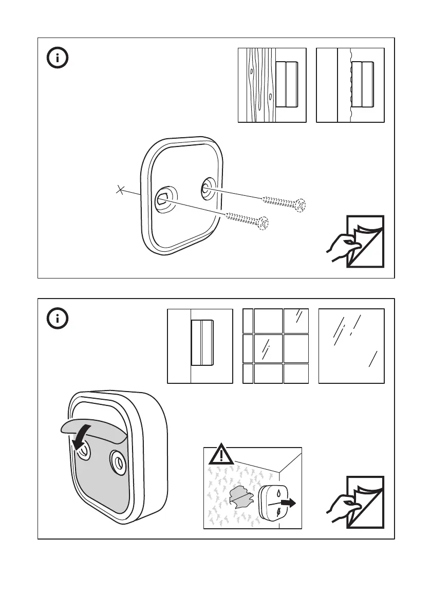 IKEA KNYCKLAN - Control Unit Mounting Options; Mounting on Solid Surfaces; Mounting on Glass Surfaces