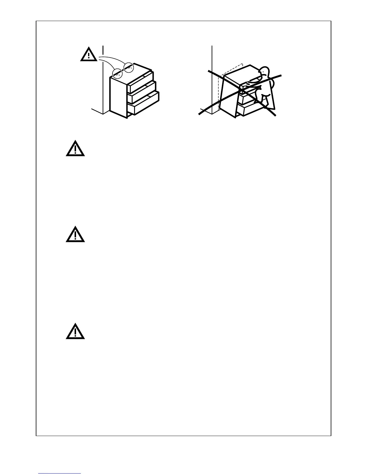 - Never allow children to climb or hang on drawers, doors or shelves.