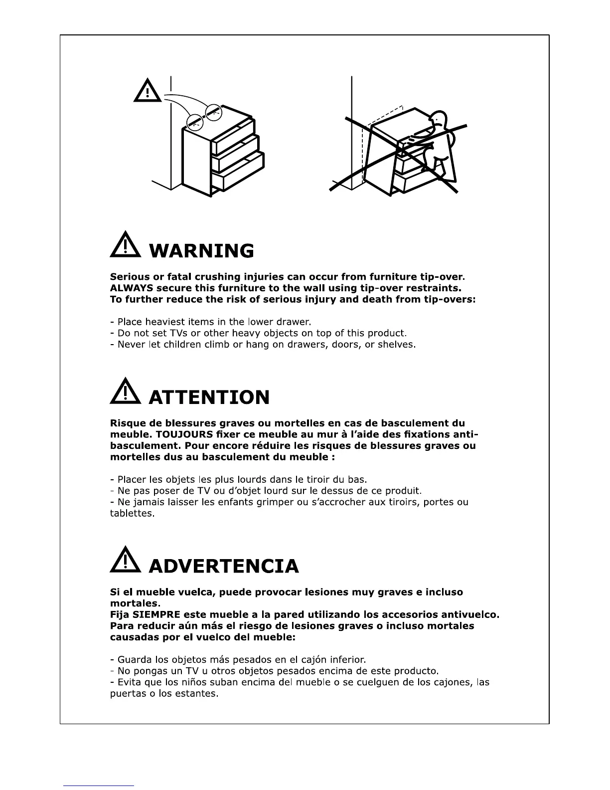 IKEA KULLEN - Safety and Preparation; Furniture Tip-Over Danger; Reduce Tip-Over Risk