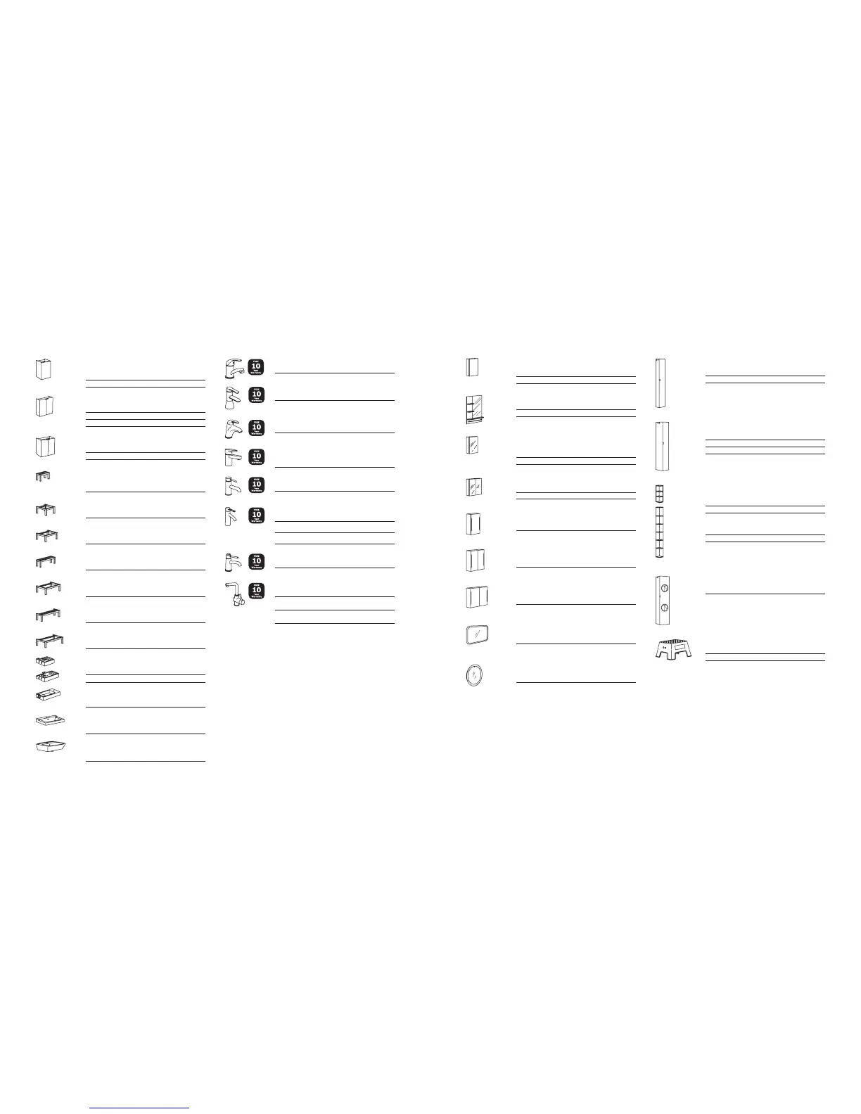 All wall, high and sink cabinets include doors, hinges, shelves and handles. All faucets are covered by a 10 year every day quality warranty. Width×Depth×Height.