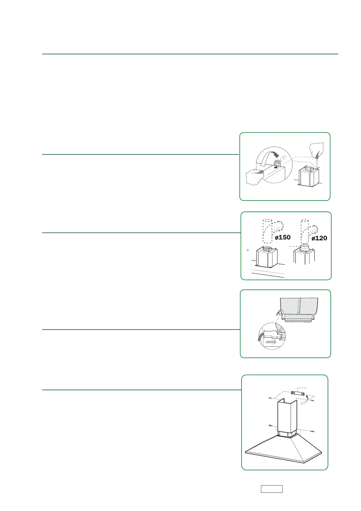 When installing the ducted version, connect the hood to the chimney using either