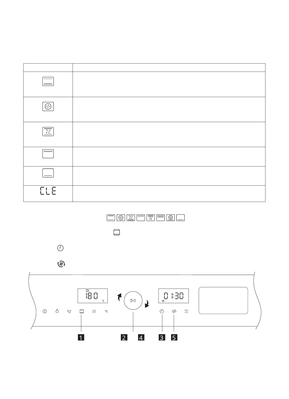 The following cooking modes ( ) can set the preheating