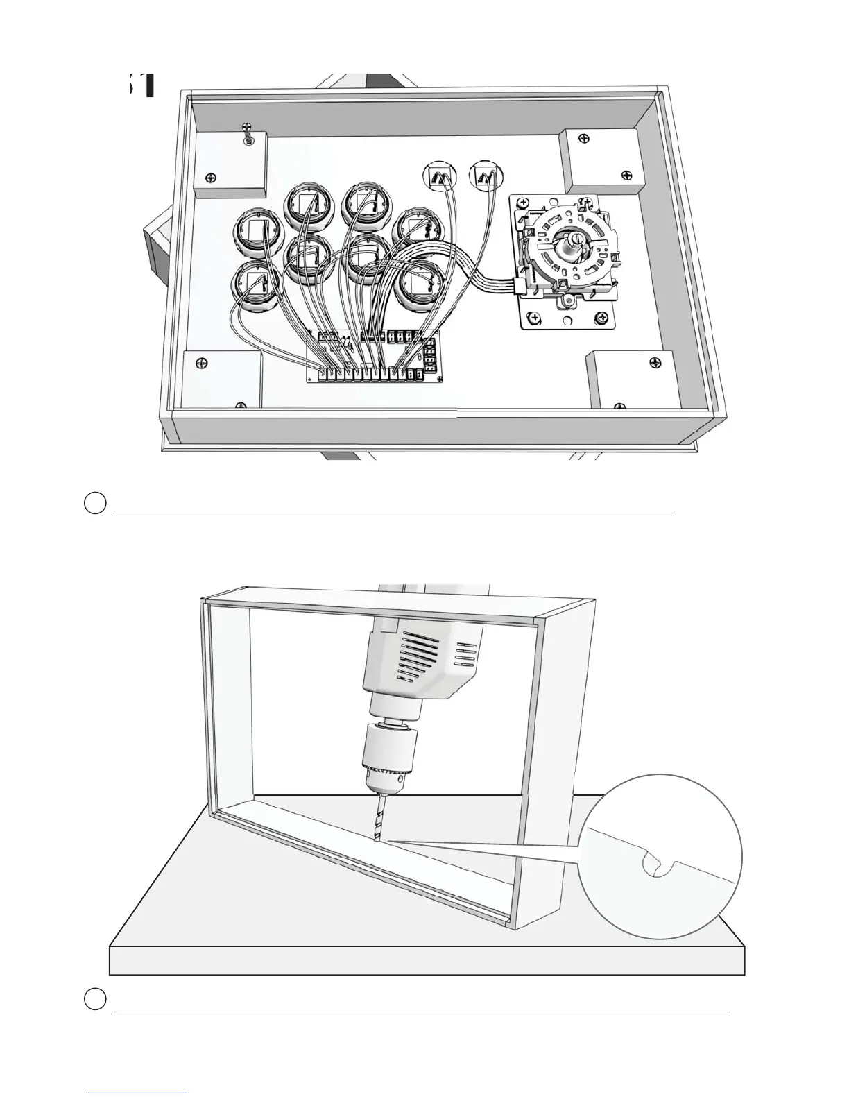 Drill a 4-5mm hole as close to the edge as possible in the middle of the longside of the bottomless box. Sand it.