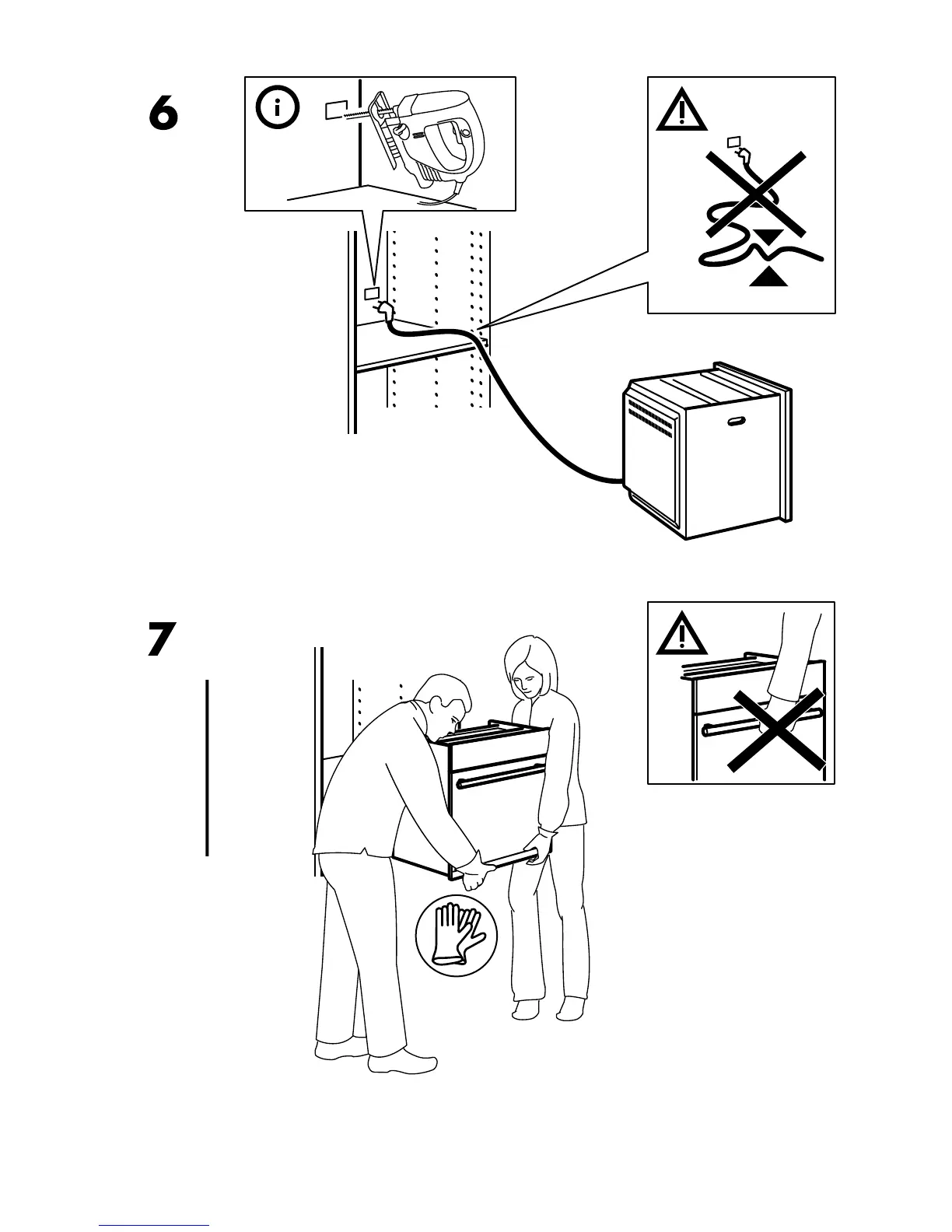 IKEA MUMSIG - Oven Insertion into Tall Cabinet; Step 6: Connecting Oven to Tall Cabinet; Step 7: Manual Handling in Tall Cabinet