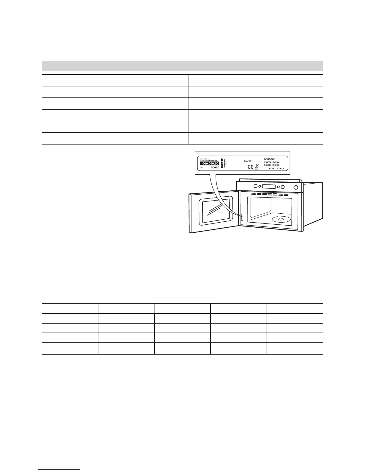 rating plate inside the appliance.