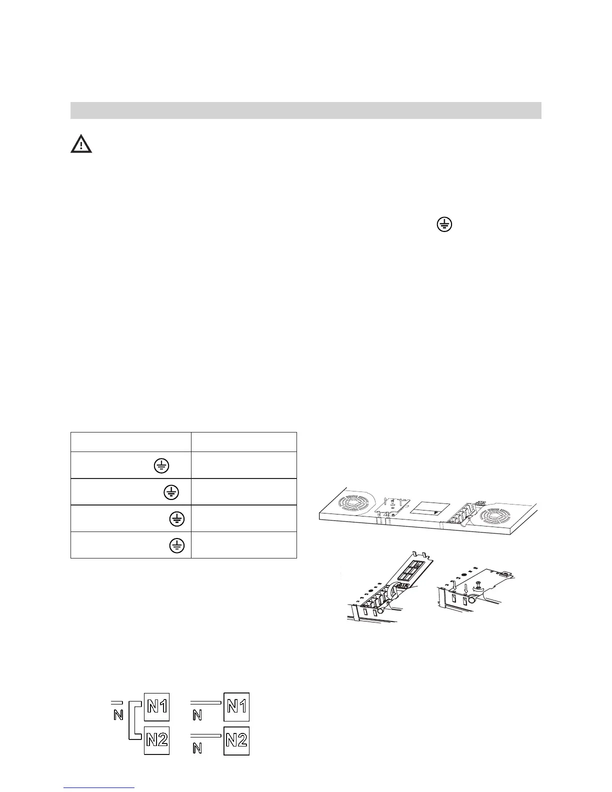 zwischen den Schrauben L1-L2 und N1-N2
