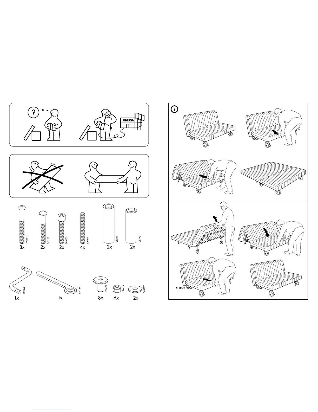 IKEA PS SOFA BED FRAME - IKEA;PS Sofa Bed Assembly; Step 1: Initial Assembly and Parts Check