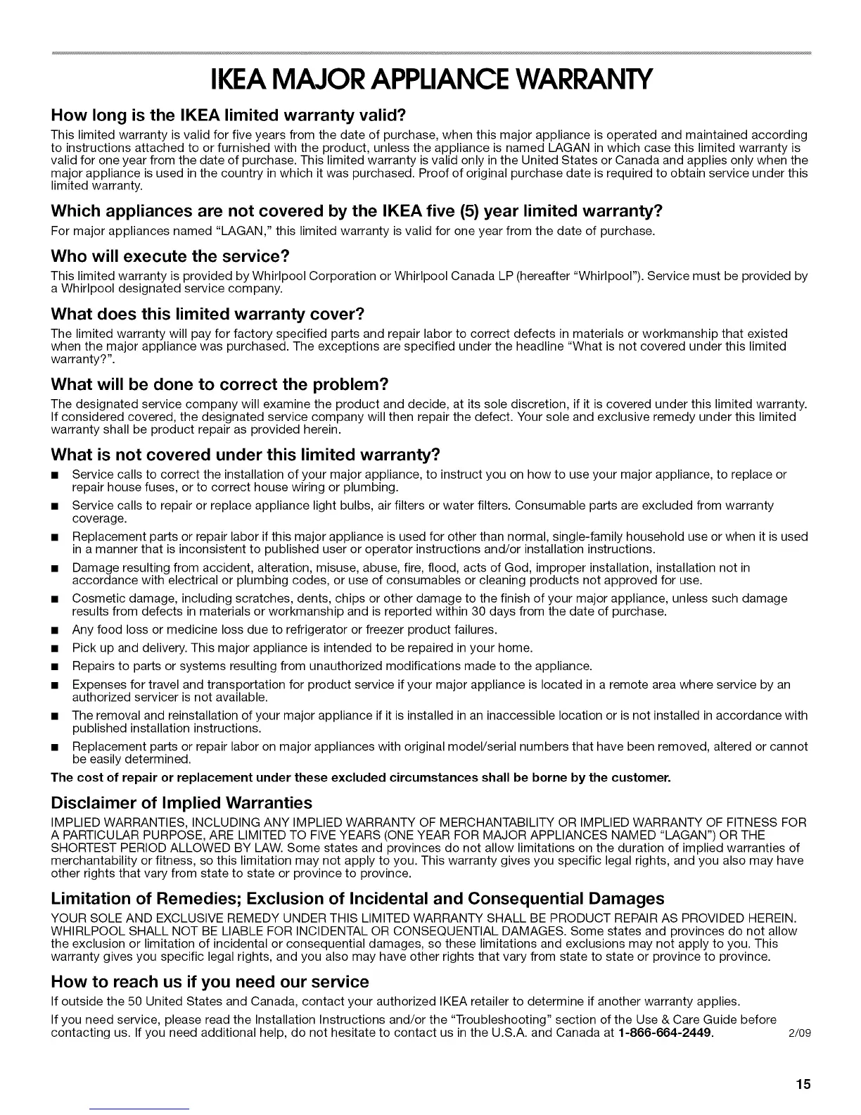 IKEAMAJOR APPLIANCEWARRANTY