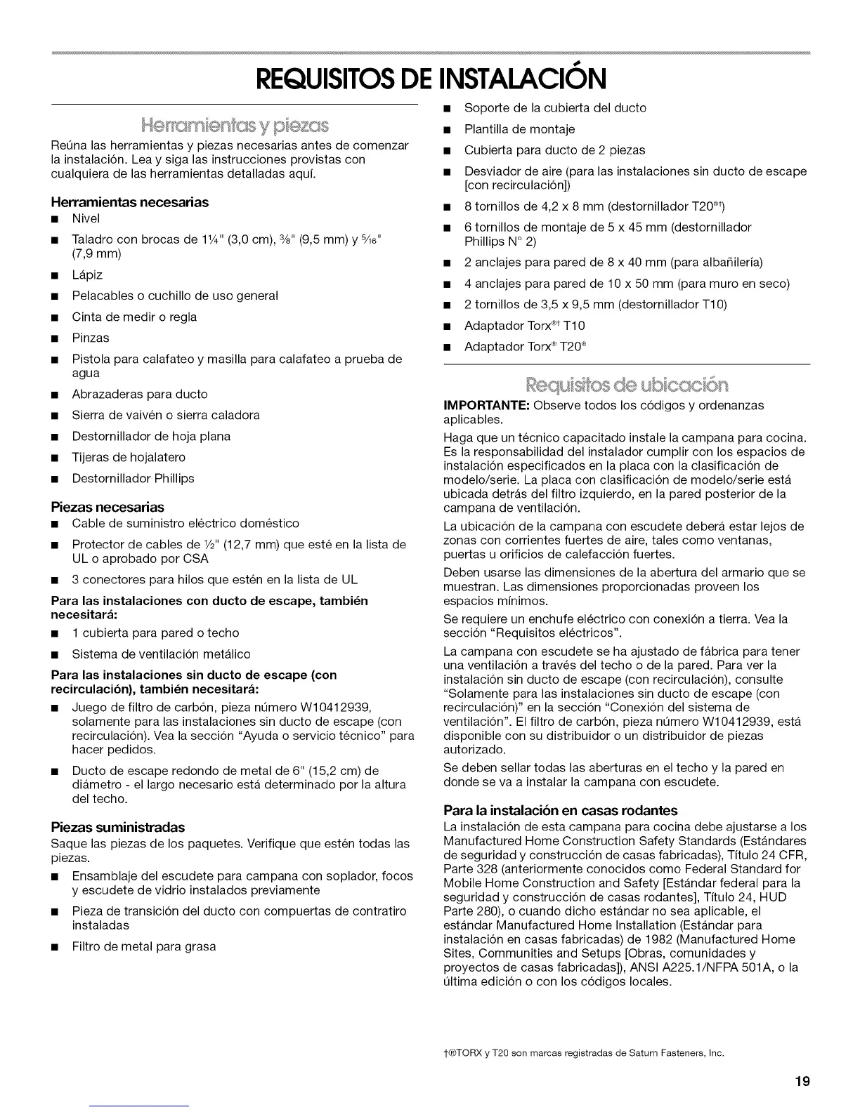 instalaci6n en casas fabricadas) de 1982 (Manufactured Home