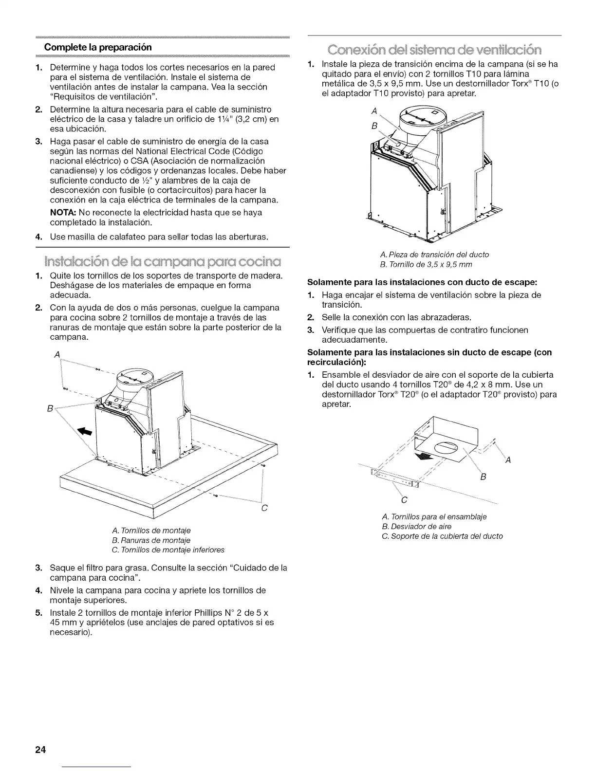 ventilacion antes de instalar la campana. Vea la seccion