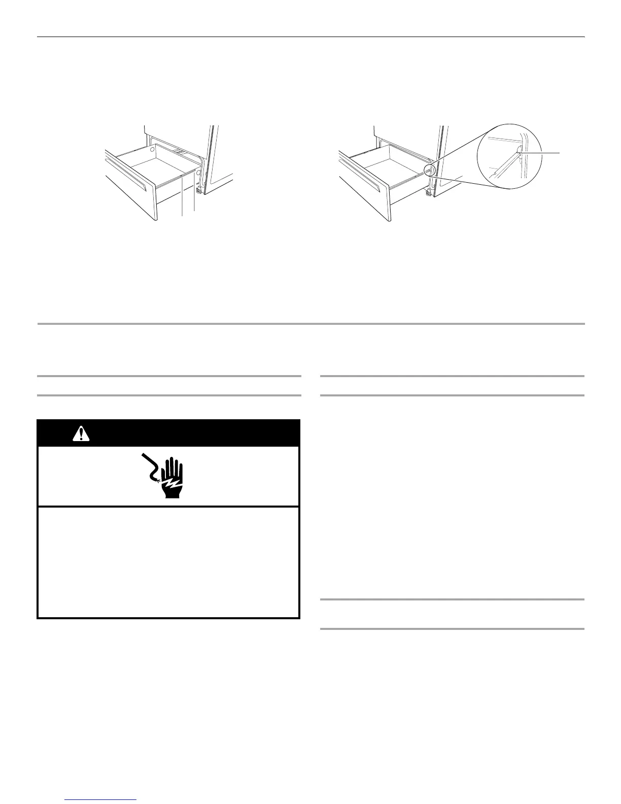 1. Soulever l'arrière du tiroir et le placer dans la cuisinière, dans