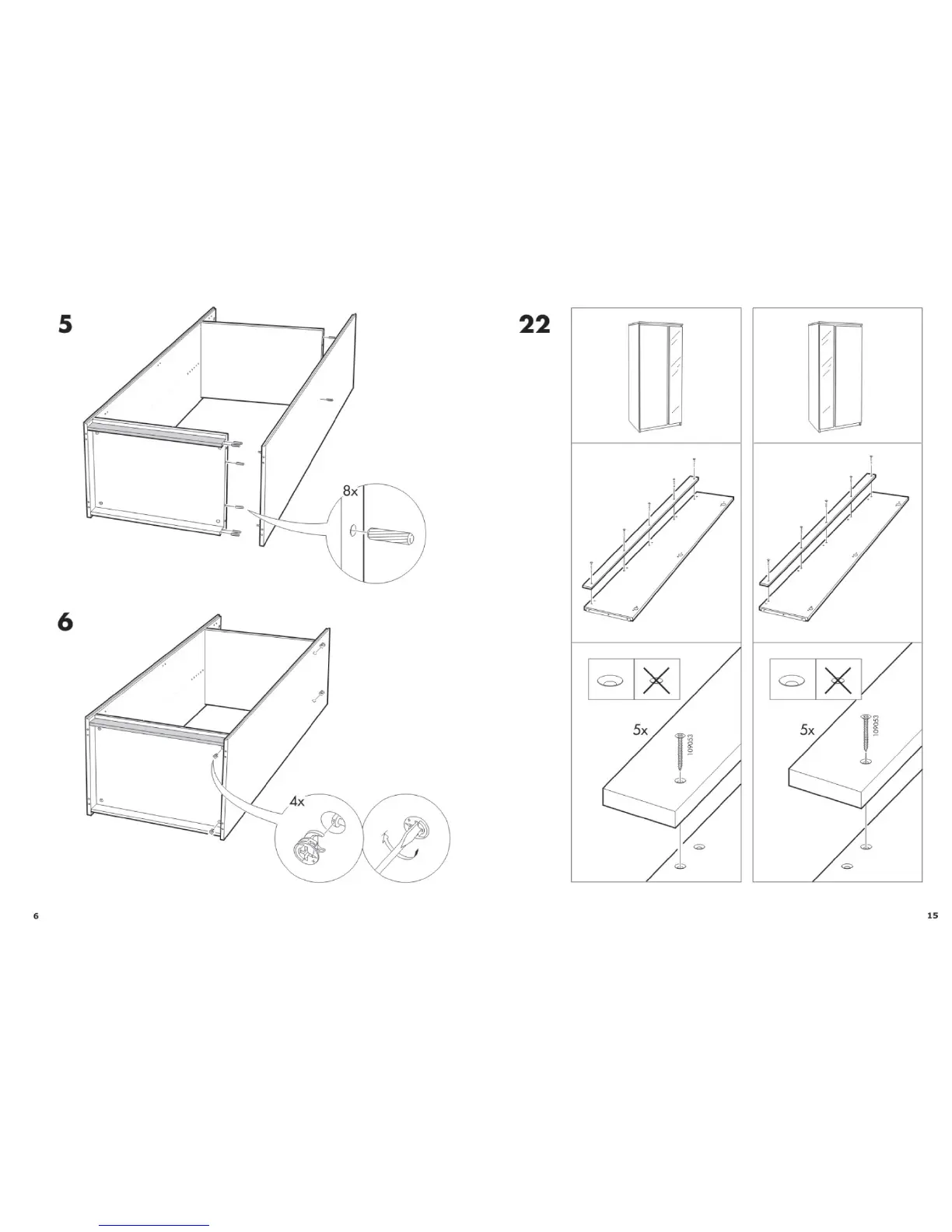 IKEA Ransby - Step 5: Secure Frame Components; Step 6: Attach Top Panel; Step 22: Final Door Adjustments