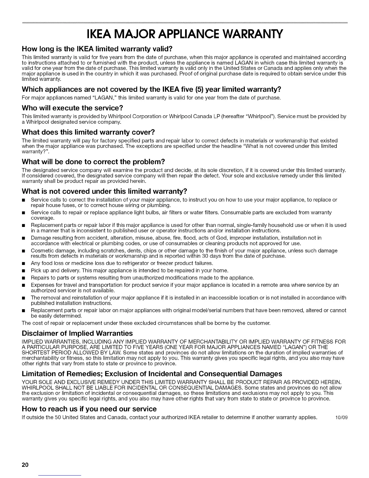 IKEAMAJOR APPLIANCE WARRANTY