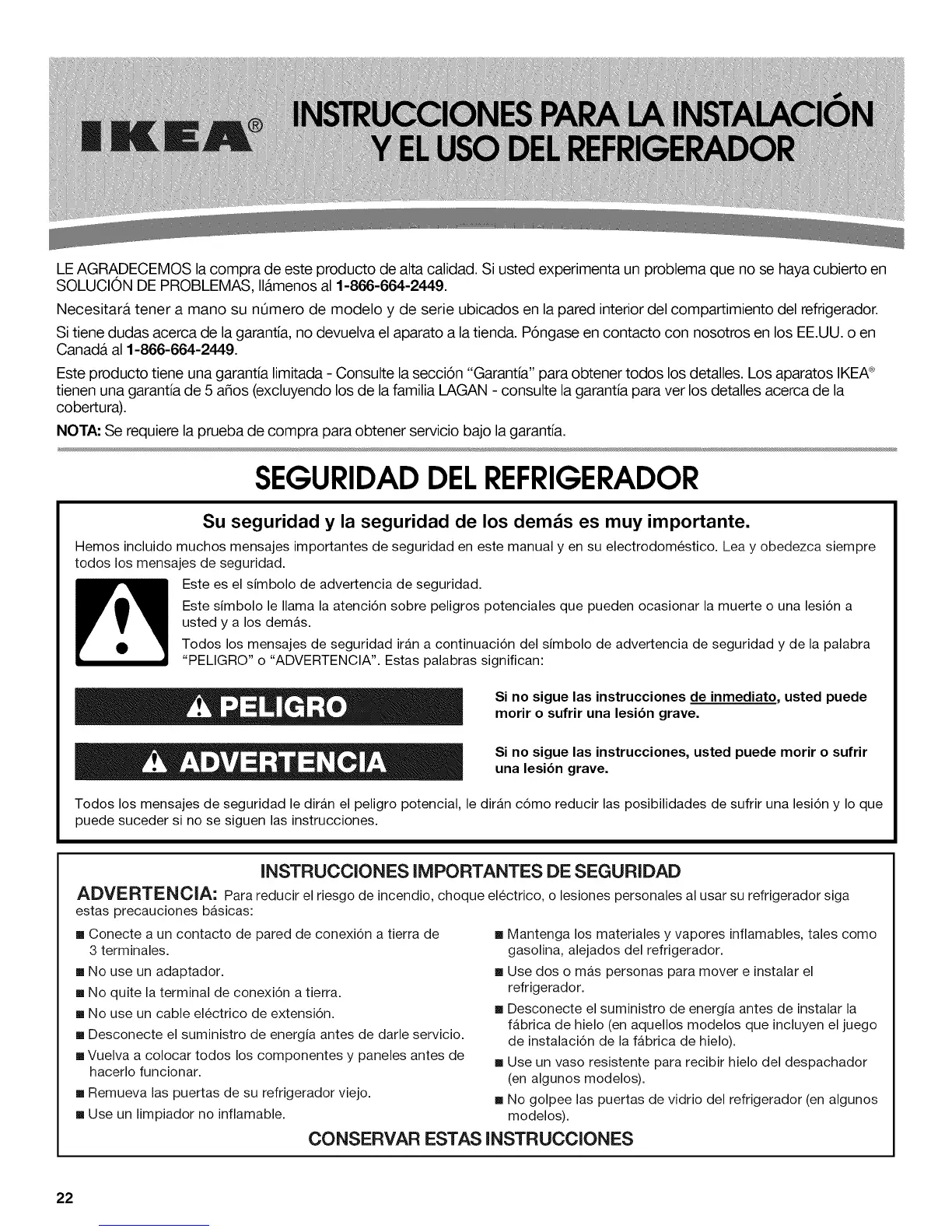 Este producto tiene una garantia limitada - Consulte la secci6n "Garantia" para obtener todos los detalles. Los aparatos IKEA®
