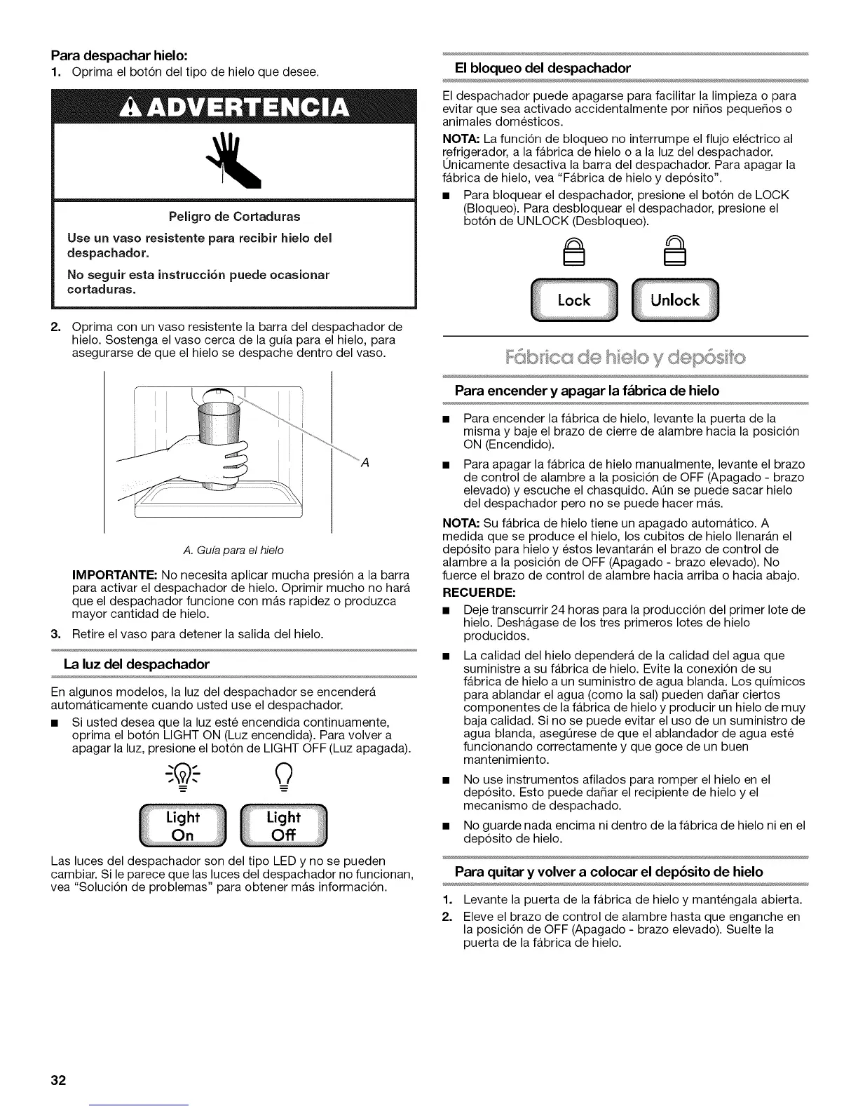 refrigerador, a la fabrica de hielo o a la luz del despachador.