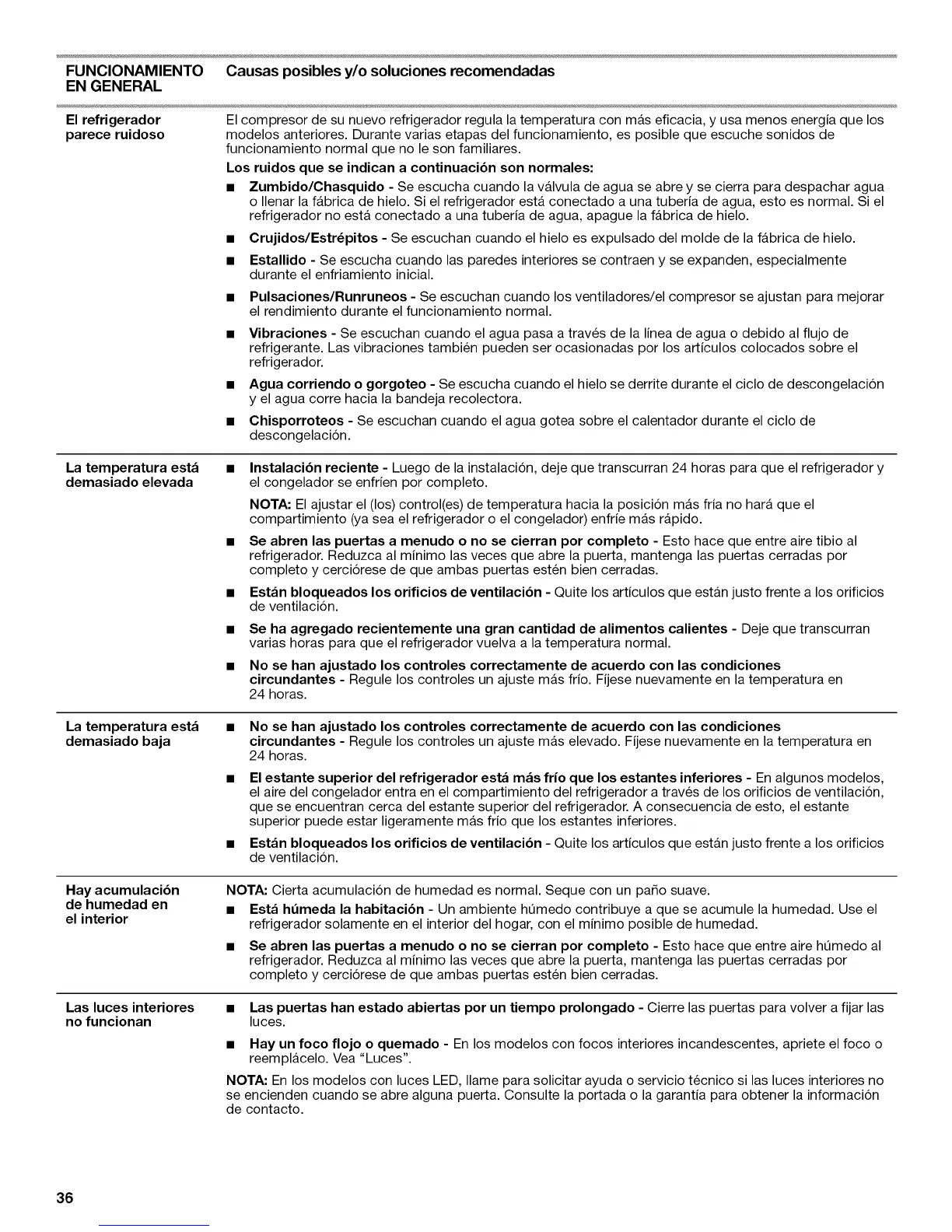 NOTA: En los modelos con luces LED, Ilame para solicitar ayuda o servicio tecnico si las luces interiores no