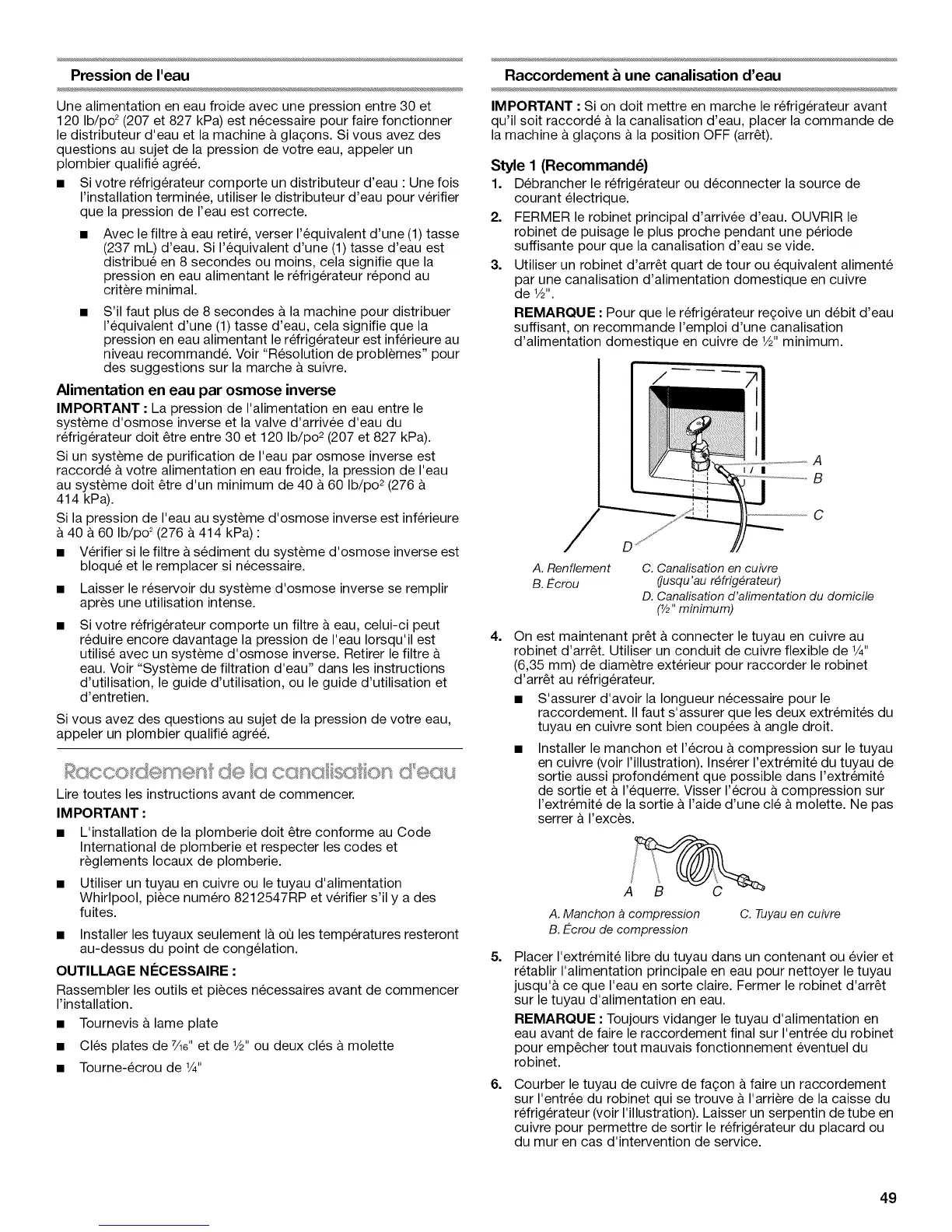 REMARQUE : Pour que le refrigerateur re9oive un debit d'eau