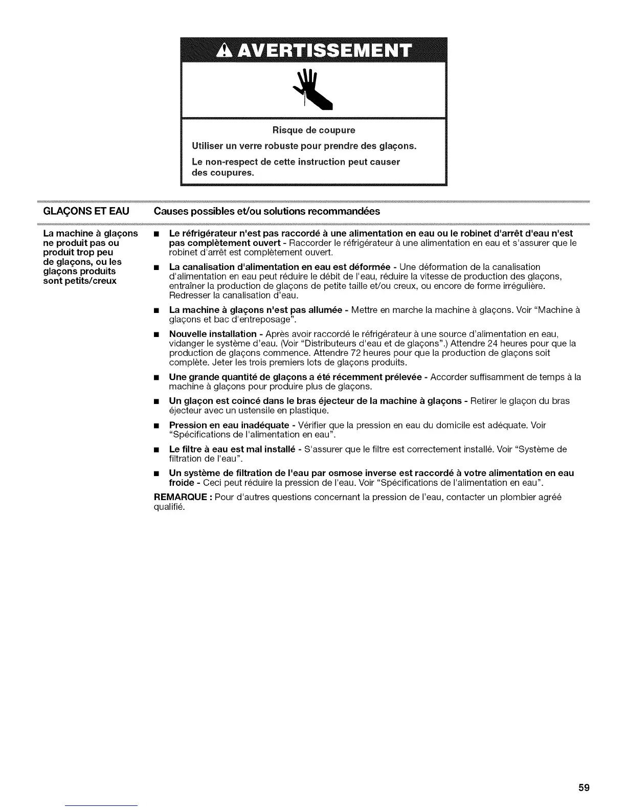 d'alimentation en eau peut reduire le debit de I'eau, reduire la vitesse de production des gla(;ons,