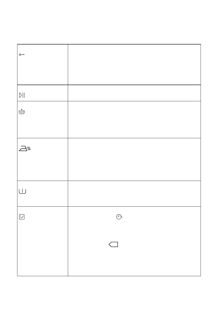 Door lock indicator This indicator illuminates when the programme starts and indi-