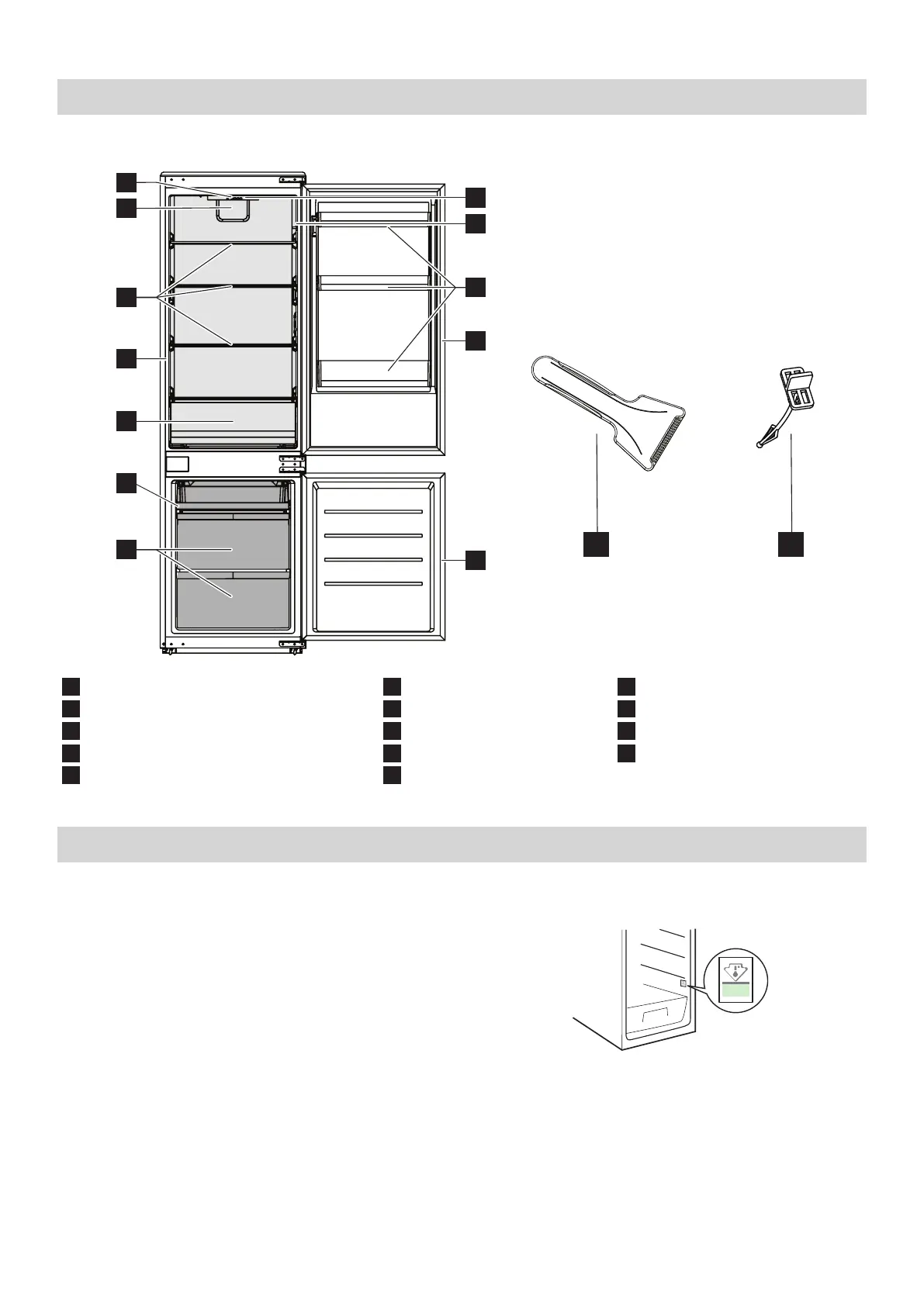 5 Freezer tray 10 Ice scraper