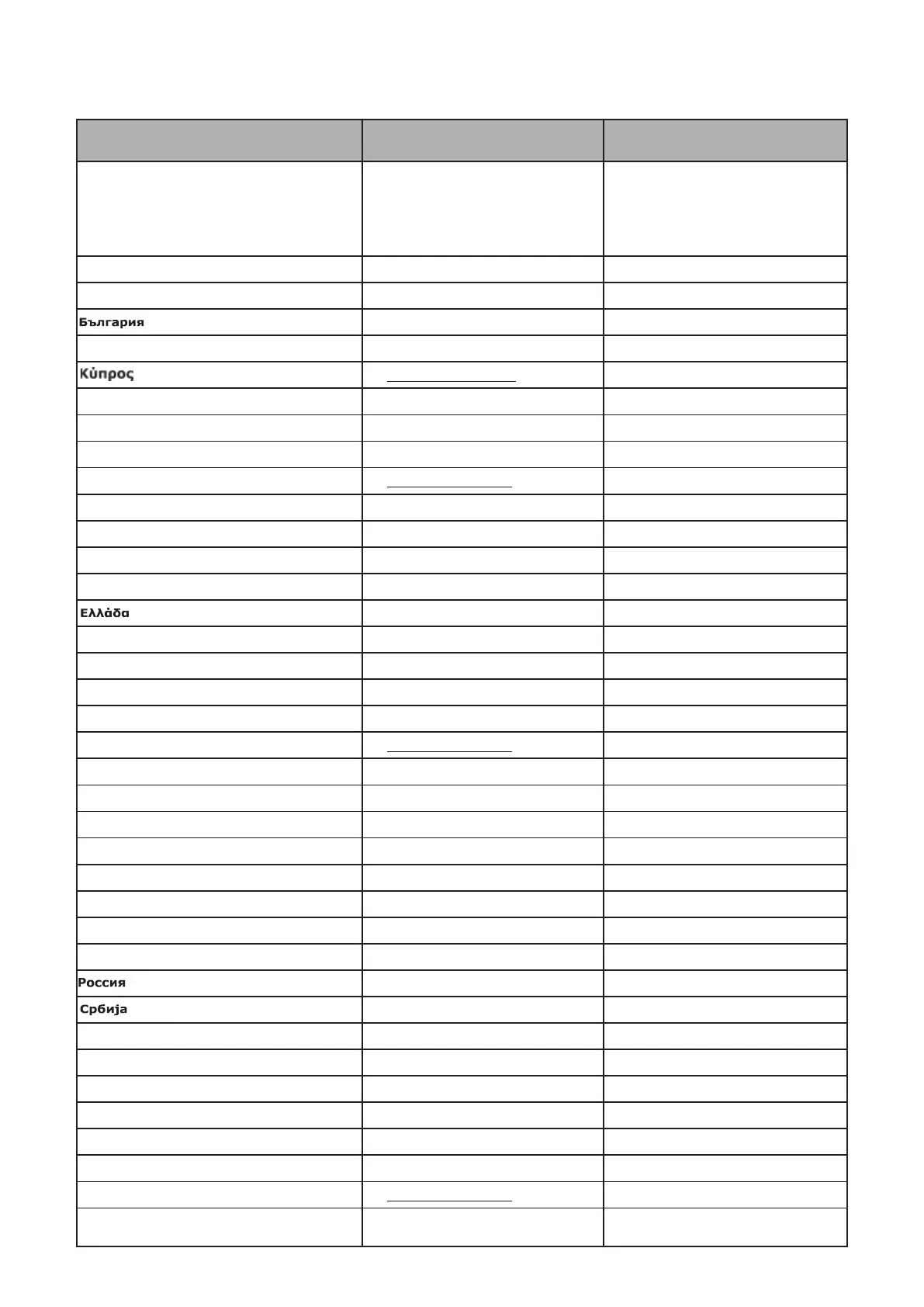 Country name in local languages Telephone number Opening times